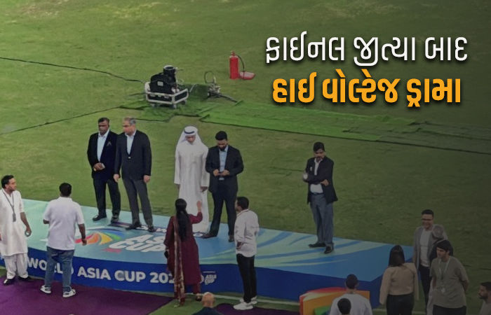 Ind vs Pak Asia Cup 2025 : એશિયા કપની ફાઈનલમાં પાકિસ્તાનને ધૂળ ચટાડ્યા બાદ ટીમ ઈન્ડિયાએ ટ્રોફી સ્વીકારવાનો ઈનકાર કરી દીધો હતો. ભારતીય ખેલાડીઓએ મેચ બાદ સ્પષ્ટ કહ્યું કે અમે પાકિસ્તાની મોહસીન નકવીના હાથે ટ્રોફી નહીં લઈએ. જેના કારણે મેચ પતી ગયાના લગભગ બે કલાક બાદ જ હાઈ વોલ્ટેજ ડ્રામા સર્જાયો હતો.